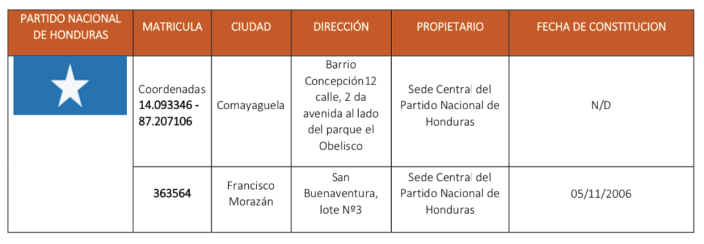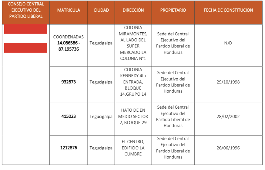 Luego de que la Misión de Apoyo Contra la Corrupción e impunidad en Honduras (MACCIH), en conjunto con la Unidad Especial de la Fiscalía de Honduras Contra la Corrupción y la Impunidad (UFECIC‐MP), solicitaran el día de ayer ante el Juzgado de Letras de Privación de Dominio una petición para la privación definitiva de los bienes que los acusados en el «Caso Pandora» compraron o mezclaron con el dinero supuestamente sustraído al Estado hondureño, las sedes del Partido Nacional de Honduras y el Partido Liberal de Honduras podrían pasar a dominio del Estado hondureño, ya que se encuentran dentro de la lista de bienes para incautar.