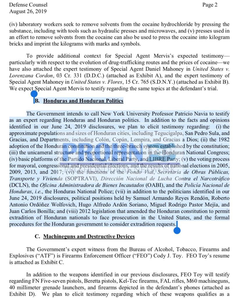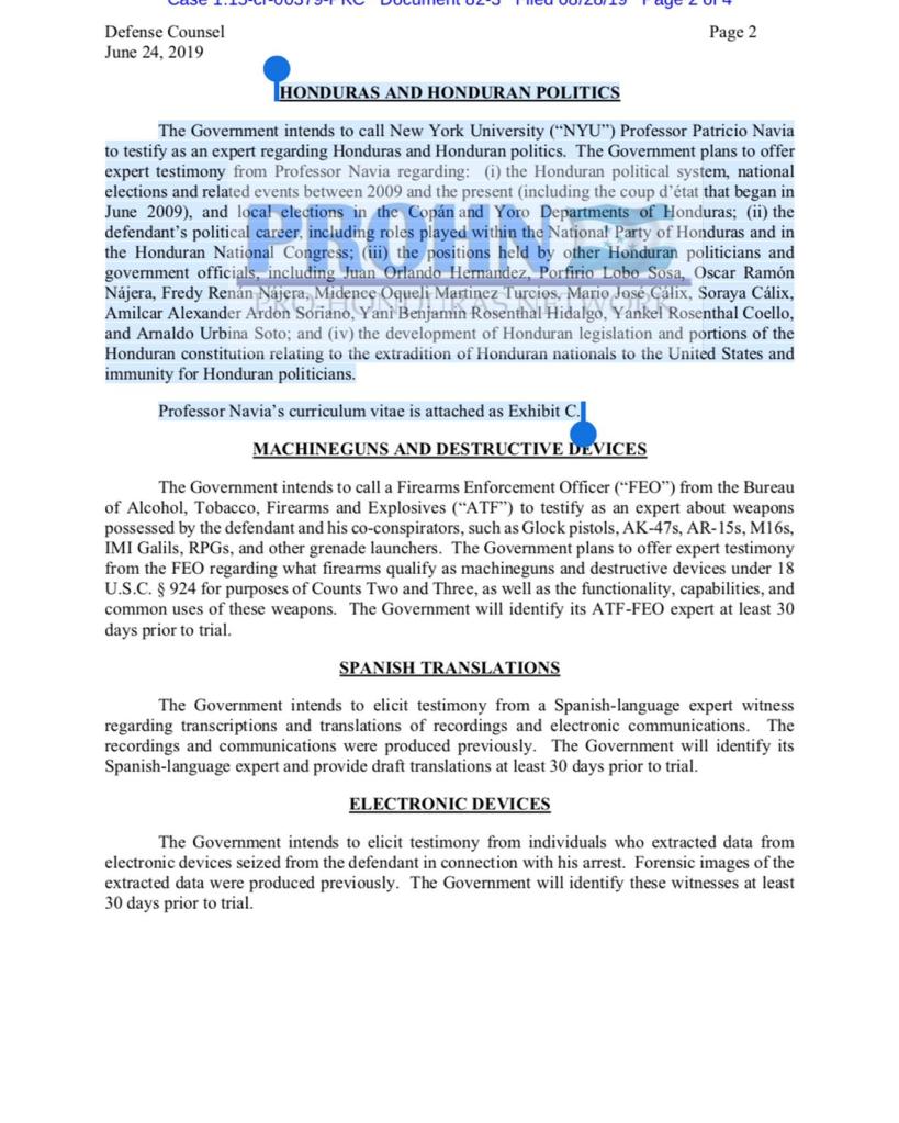 El día de hoy la fiscalía para el Distrito Sur de New York, presentó nueva documentación relacionada con el caso de Juan Antonio Hernández Alvarado, en la que ratifican la complicidad y el uso de poder político en el país para facilitar el trafico de drogas por medio de altos cargos obtenidos a través Partido Nacional de Honduras.