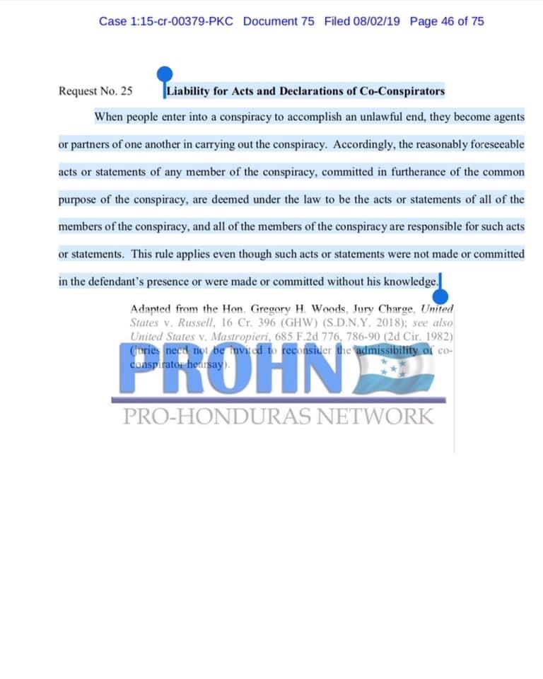Se consideran, bajo la ley de Estados Unidos que los actos o declaraciones de todos los miembros de la conspiración, y todos los miembros de la conspiración son responsables de tales actos o declaraciones.