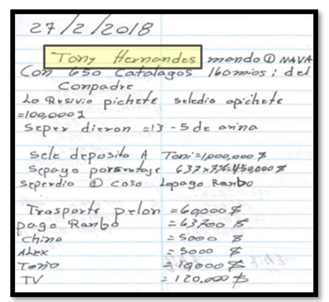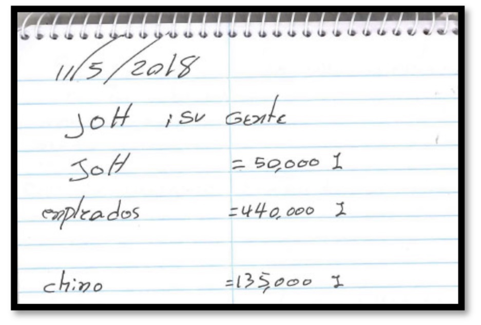 Entre 2004 y 2019, el acusado aseguró y distribuyó millones de dólares en sobornos derivados de drogas a Juan Orlando Hernández, al expresidente hondureño Porfirio Lobo Sosa y a otros políticos asociados con el Partido Nacional de Honduras. Antes de 2012, como ciudadano hondureño políticamente conectado que operaba en Honduras, el acusado actuó con la confianza de que no podía rendir cuentas por sus crímenes en Estados Unidos.