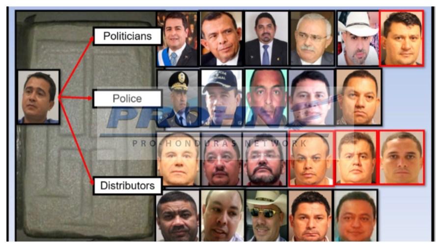 Durante el proceso judicial contra Tony Hernández hermano de Juan Orlando Hernández, la fiscalía de New York desclasificó en el mes mayo y de agosto del 2019 documentos que involucra directamente a varios miembros del gobierno de Hernández en la conspiración para traficar drogas hacia Estados Unidos, entre ellos se encuentran el ex presidente Porfirio Lobo Sosa y Juan Orlando Hernández encabezando la lista de los co-conspiradores.